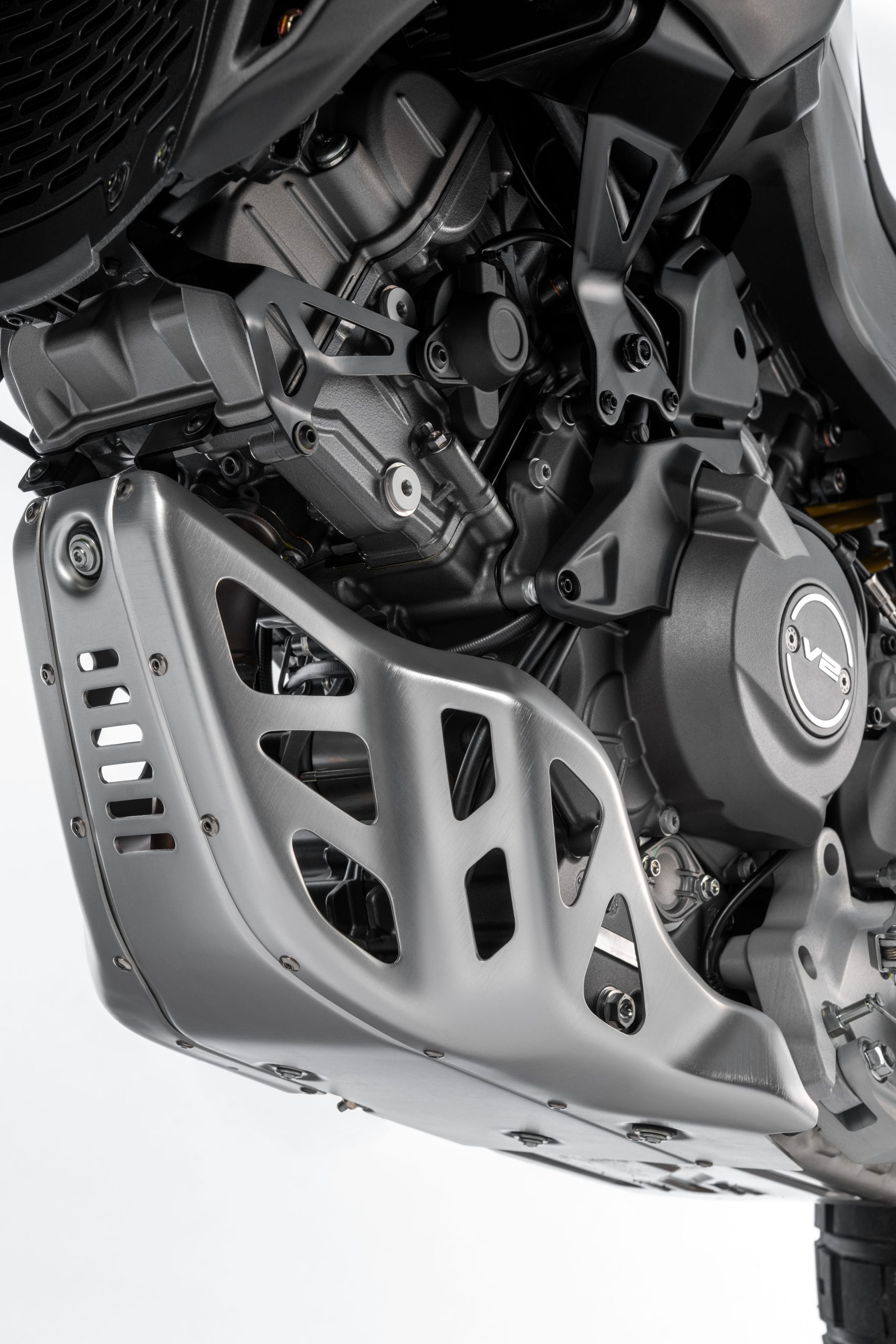 Net als de andere V2’s krijgt ook deze DesertX het nieuwe 890cc V2 blok. In de offroadgerichte DesertX is de motor goed voor 110 pk @ 9.000 tpm en 92 Nm @ 7.000 tpm. Daarmee blijven het vermogen en koppel identiek aan het voorgaande model. Wel werd de motor een stuk lichter, met dank aan het aluminium monocoque frame waarin het motorblok een dragende functie heeft. Rijklaar weegt de nieuwe DesertX 209 kilo, al is dat wel met een lege achttien liter polymeertank (drie liter kleiner dan voorheen).