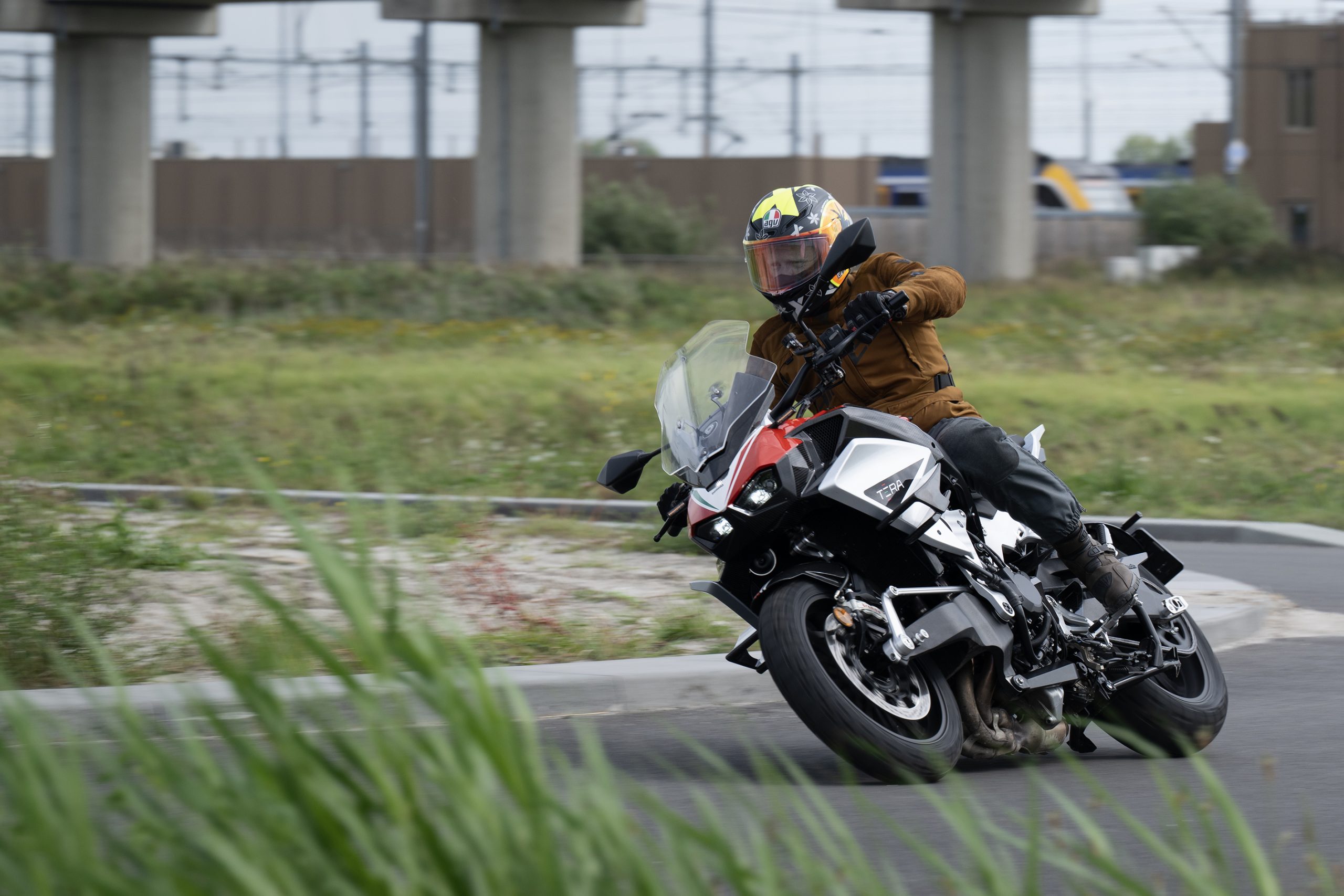 Wat de Bimota ten opzichte van dat soort hoogpotige crossover concurrenten ook heel goed doet, is haarfijn sturen combineren met een bak veercomfort. De Bimota weet met z’n doordachte rijwielgedeelte die zaken prima gescheiden te houden. Het voelt eenmaal op bochtig terrein echt niet helemaal wereldvreemd, want een klein beetje ‘duik’ zit er zeker nog wel in bij remmen en accelereren, maar je voelt aan alles dat de Tera eenmaal op een oor veel meer veersouplesse biedt.