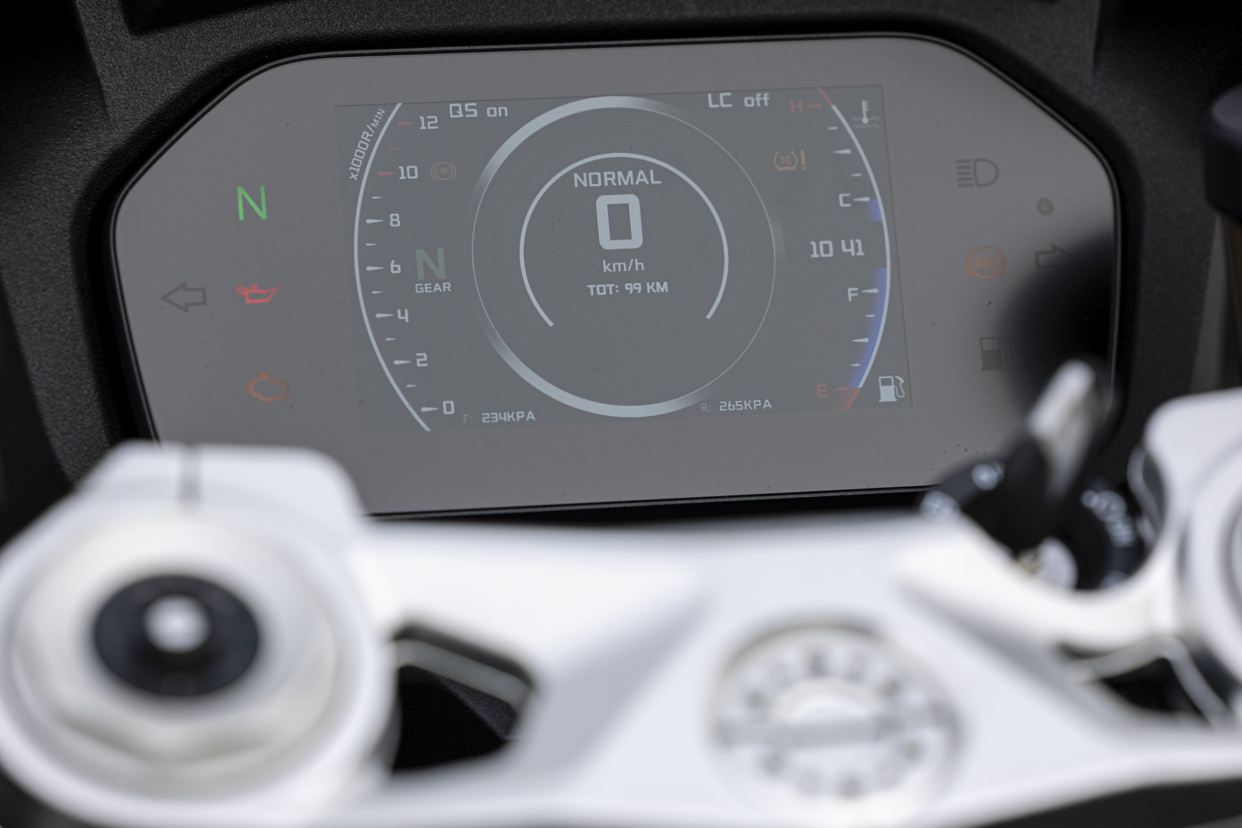 Het riekt niet alleen naar MV, het is deels ook MV. Hoe de liefdespaden van beide merken elkaar nu precies gekruist hebben blijft wat vaag, maar feit is dat QJMotor enkele jaren geleden de Lucky Explorer 550 zou gaan bouwen voor MV Agusta (weet je nog…) maar dat toenmalig CEO Stefan Pierer daar hardhandig een stokje voor stak na de overname door KTM. Daarna was de liefde tussen QJ en MV danig bekoeld, maar was er kennelijk wel al een container met 921-blokken onderweg naar het Verre Oosten. QJMotor spreekt het zelf niet hardop uit, maar het is duidelijk dat het blok uit de Brutale 921 – daarna doorontwikkeld voor het voortijdig gesneuvelde 921 S prototype – in ieder geval de basis vormt voor het kloppend hart van de 921 RR. Dat zie je … en dat hoor je zodra je de startknop indrukt: de kenmerkende rauwe MV-rasp herken je uit duizenden.