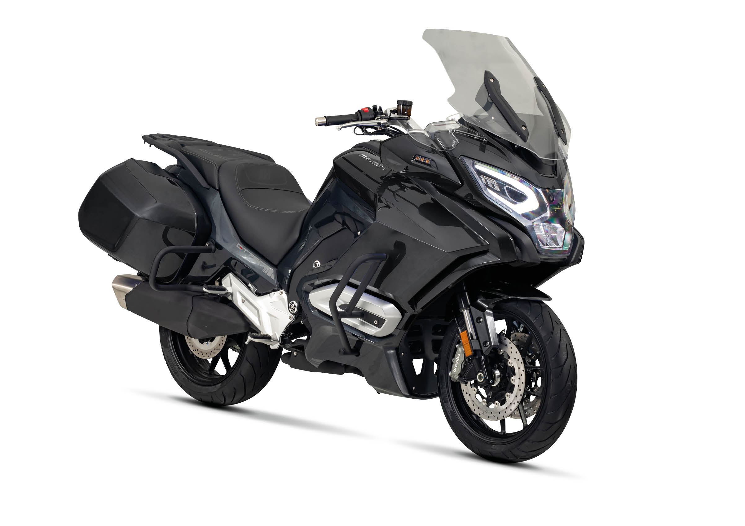 Mash kiest een nieuwe koers. Het Franse merk, opgericht in 2012, richtte zich de afgelopen dertien jaar met name op neo-retromodellen maar met de GT750 gaat het merk een nieuwe richting uit. Voor de ontwikkeling van deze GT750 ‘Gran Turismo’ is een samenwerking aangegaan met het Chinese Jedi Motor. Dat wil zeggen: het Mash-logo staat op het kuipwerk van deze licht teruggetunede (want Euro5+) Jedi Motor Kirin 750, herkenbaar aan het Jedi-logo op het motorblok.